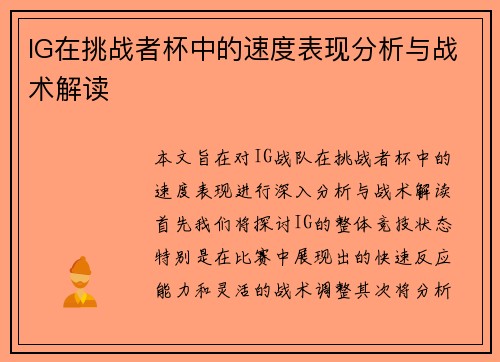 本文将对RNG战队在精英赛中的表现进行深入分析,特别是其耐力表现及战术解读。首先,文章将探讨RNG在比赛中的心理素质与体能管理,以理解其如何保持高水平的竞技状态。接着,将分析RNG的战术布局,包括团队配合与个体发挥,揭示他们如何通过策略调整来应对不同对手。此外,文章还将关注RNG在比赛中应对压力的能力,以及如何利用经验丰富的选手进行关键时刻的决策。最后,通过总结和展望,期待未来RNG在更多赛事中的...